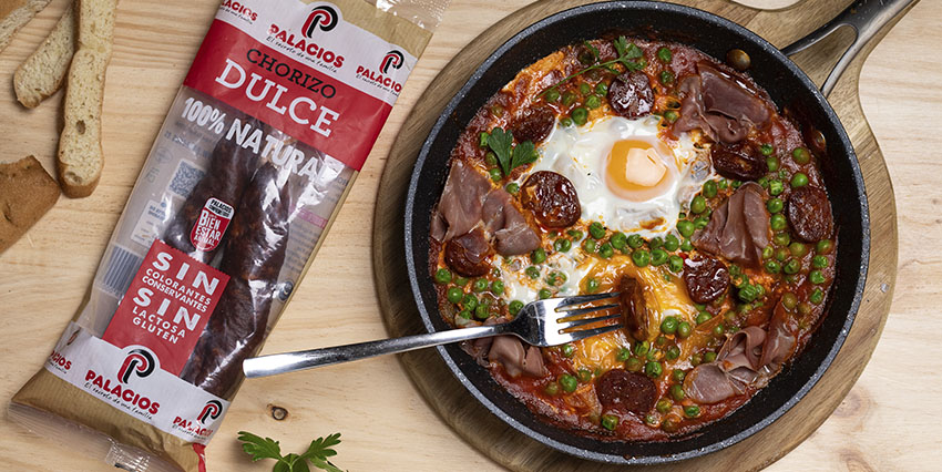 00:20Si aún no has probado los huevos a la flamenca, ya estás tardando. Se trata de un plato típicamente andaluz lleno de color y sabor, una receta casera muy completa, que combina verduras, embutidos y huevos en una presentación vistosa y sabrosa. A continuación, te enseñamos a cocinar nuestra versión con Chorizo Palacios, que le aporta un toque único e inimitable.