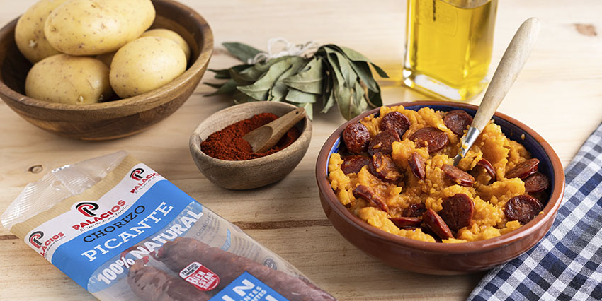 00:40Las patatas revolconas, o “meneás”, son uno de esos platos que forman parte de la esencia de nuestra gastronomía tradicional. Una receta humilde que demuestra que con pocos ingredientes, y baratos, se pueden conseguir recetas inolvidables. Normalmente se acompañan con torreznos, pero en nuestra versión les damos un giro irresistible incorporando Chorizo Palacios Picante.