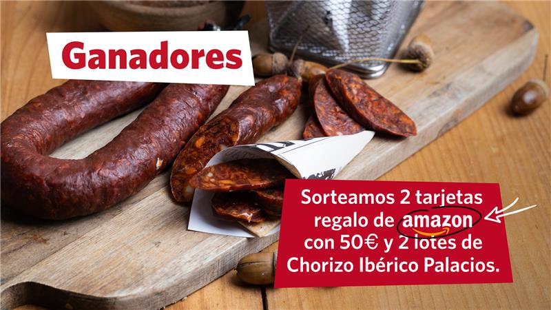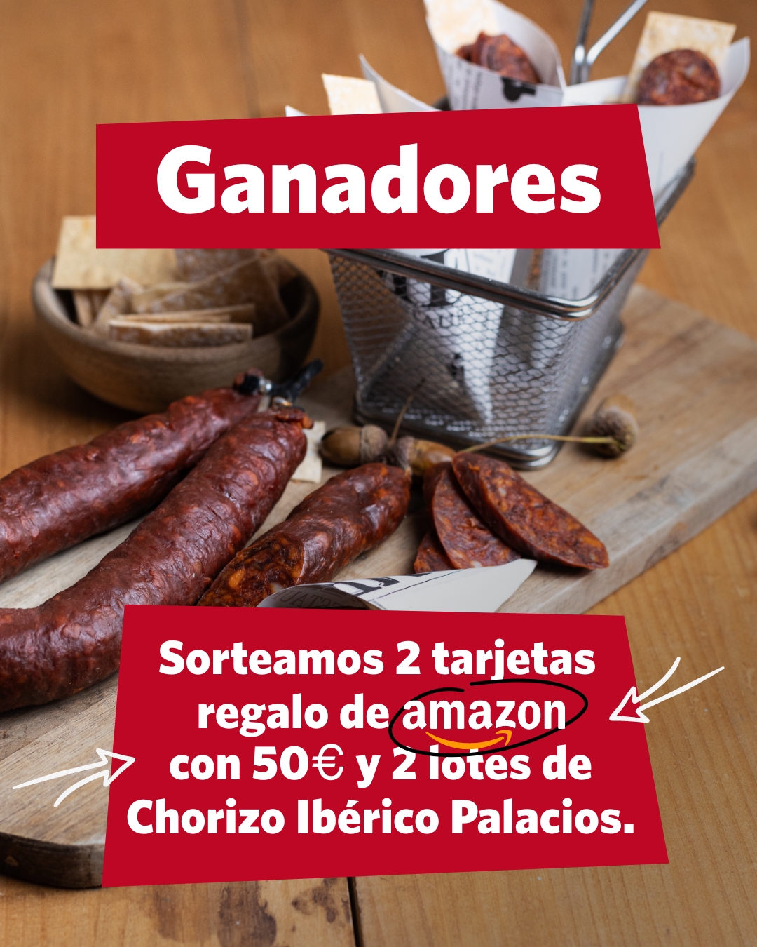 La Navidad está cada vez más cerca y en Palacios hemos querido celebrarlo con todos vosotros con una promoción especial, en la que sorteábamos un premio perfecto para esta época del año: una tarjeta de Amazon de 50 € para adelantar las compras navideñas y un lote de nuestro chorizo ibérico más festivo.